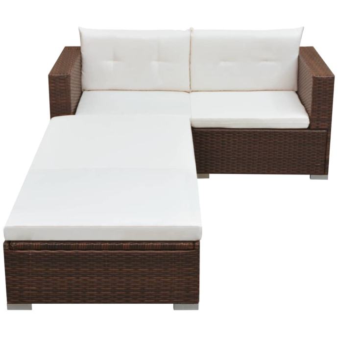 vidaXL Vrtna sedežna garnitura z blazinami 3-delna poli ratan rjava