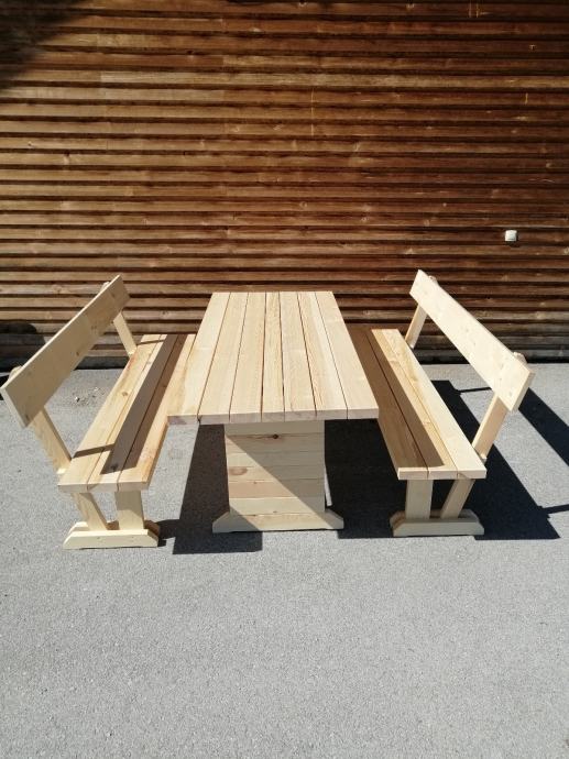 Vrtna garnitura miza in dve klopi dim. mize 196/80..