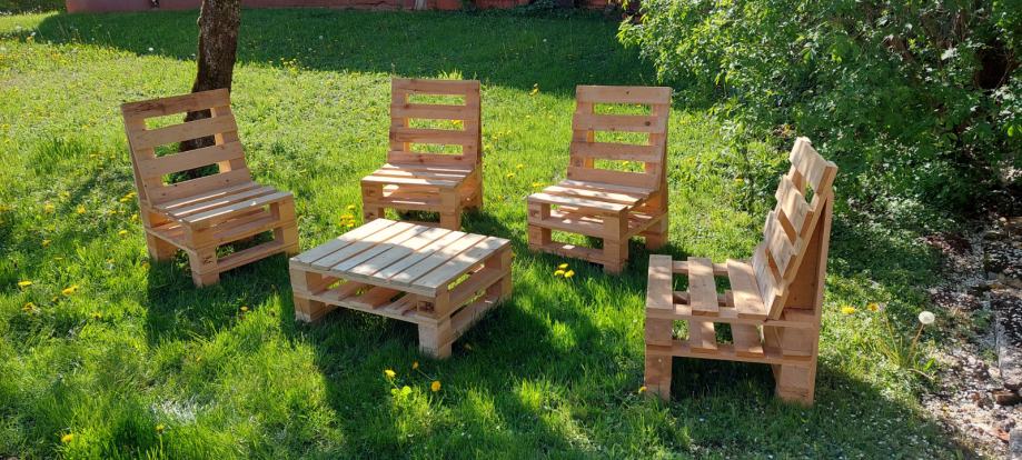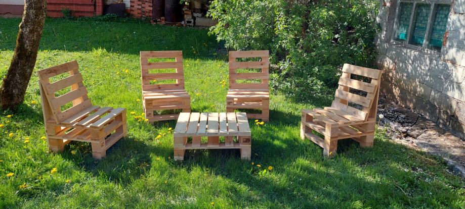 Prodam 5 delno vrtno garnituro iz palet 4 stoli in mizica. Cena 250€.