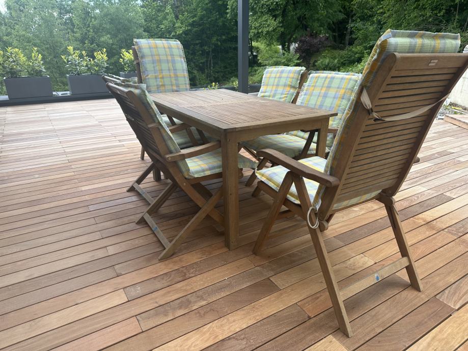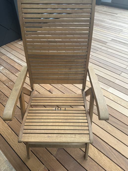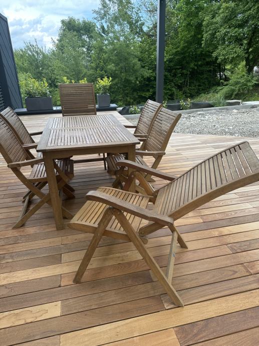 Prodam lepo ohranjeno vrtno mizo in 6 zlozljivih stolov (od teh 2 z nastavljivim hrbtiscem).