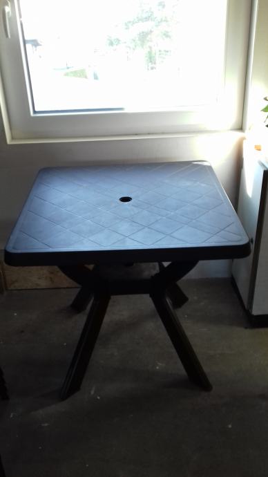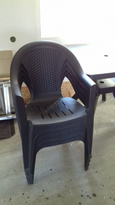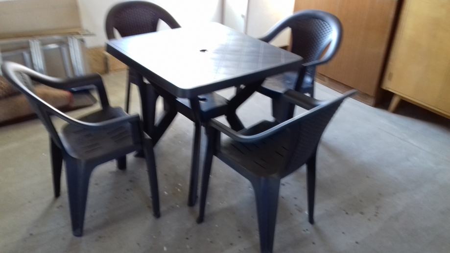 Prodam malo rabljeno plastično vrtno mizo črne barve v kompletu s 4 črnimi stoli.