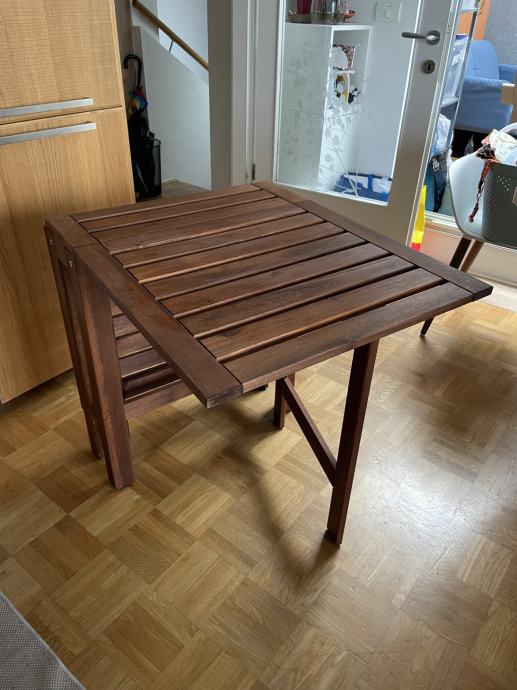 Prodamo odlično obranjeno (kot novo) leseno vrtno mizo, ki je raztegljiva na dva načina. Za boljšo predstavo si oglejte priložene slike.