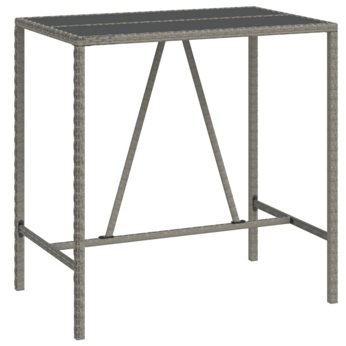 vidaXL Barska miza s stekleno ploščo siva 110x70x110 cm poli ratan