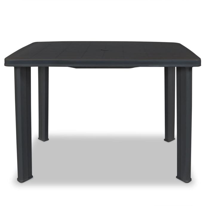 Ta na vremenske vplive odporna vrtna miza bo odlična izbira za večerjo na vrtu, terasi ali v kampu. Zunanja jedilna miza je narejena iz vzdržljive plastike, ki je odporna na vremenske vplive in enostavna za čiščenje. Miza ima odprtino za namestitev enčnika, da vam bo v senci prijetno hladno. Je tudi lahka, zato jo boste brez težav premikali. Sestava je preprosta.