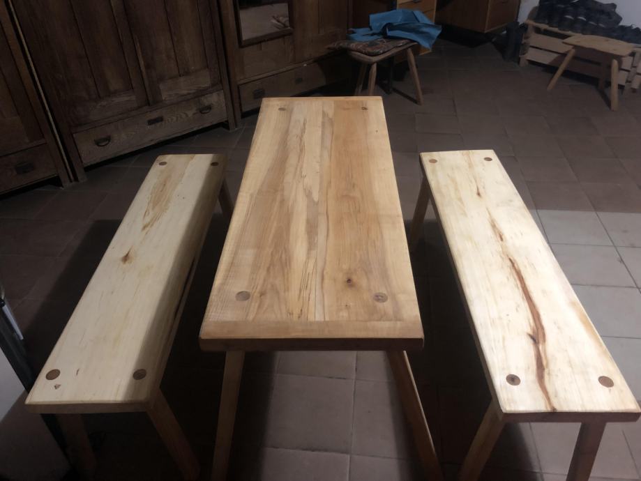 Prodam ročno izdelano mizo s pripadajočimi lesenimi stoli iz kakovostnega masivnega lesa. Za bolj podrobne informacije prosim pokličite.