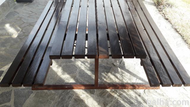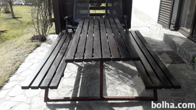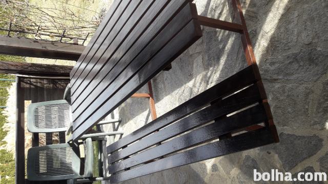 Prodam hrastovo vrtno mizo s klopema, skupnih dimenzij 2000×1640 cm. Kontakt: 041658174