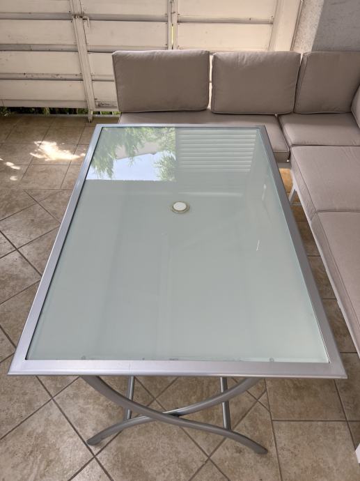 Prodam vrtno mizo s kovinskim ogrodjem in stekleno ploščo.