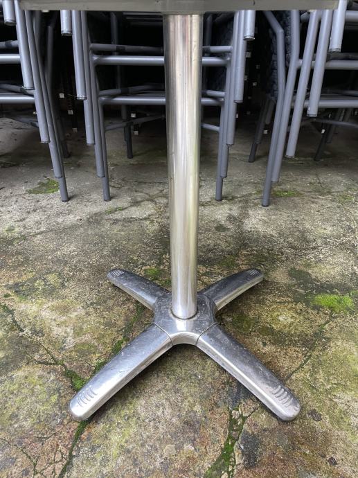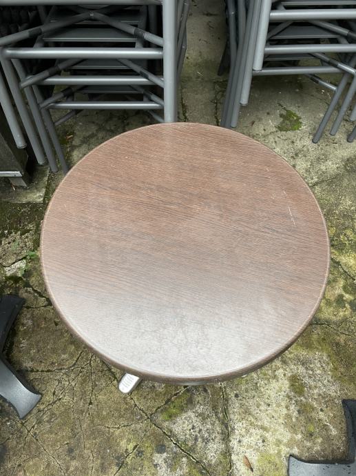 Prodam profi vrtne mize za terase. Plošča topalit (rjave barve in 3 v črno-beli izvedbi, vidno na slikah), podnožje kovinsko oz. pri črno-belih železno. Odporne na vse vremenske pogoje, visoke kvalitete in neuničljive. Lepo ohranjene, uporabljene (nekatere) zadnje 4 sezone. Generalno očiščene.