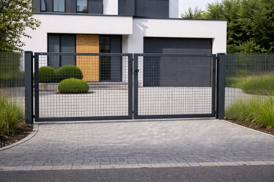 Dvokrilna vrata izdelamo iz kakovostnih materialov in jih opremimo s panelnim polnilom, ki se popolnoma ujema z obstoječo panelno ograjo. Konstrukcija vrat je robustna, stabilna in trajna, kar zagotavlja dolgo življenjsko dobo in zanesljivo delovanje.