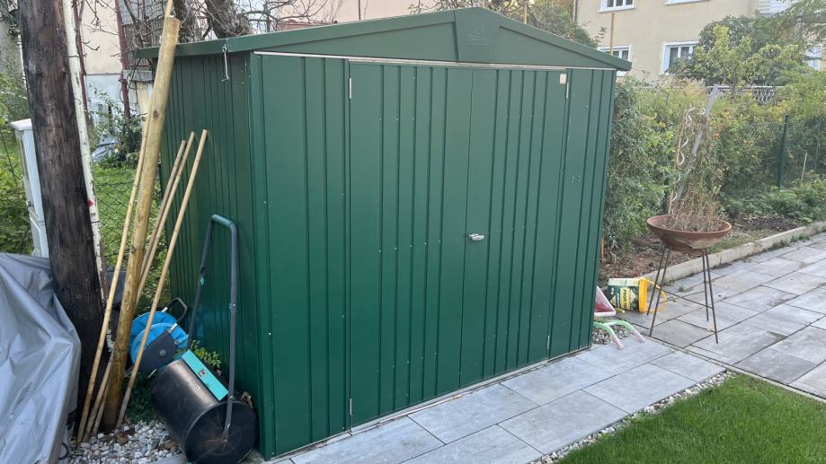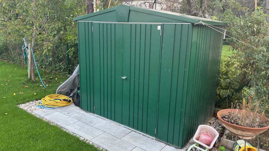 Prodamo vrtno lopo Biohort velikosti 244x156cm v zeleni barvi. Dobro ohranjena. V notranjosti police (2x) in obešala.