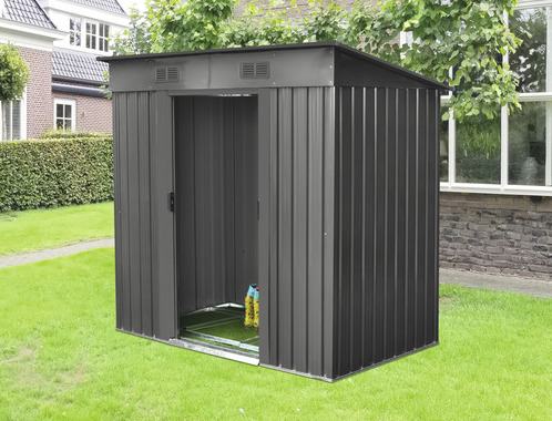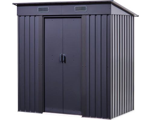 Lopa za orodje z enokapno streho je idealna rešitev za shranjevanje vrtnega orodja, opreme in drugih pripomočkov. Izdelana je iz močne pocinkane jeklene pločevine, ki je dodatno barvana v temno siv kovinski odtenek, kar zagotavlja dolgotrajno odpornost na vremenske vplive in korozijo.