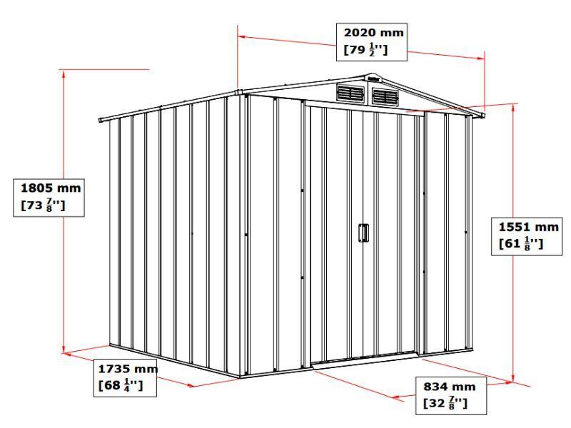 Kovinska vrtna hiška-uta-lopa 3,67 m² - 2,02m x 1,82m - TEMNO SIVA
