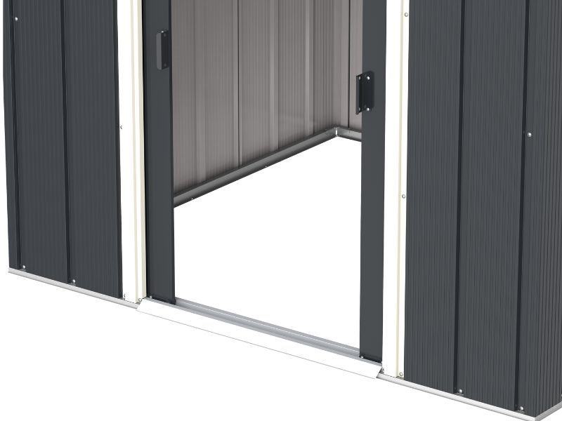 Ta kovinska vrtna uta nudi praktičen in varen prostor za shranjevanje različnega vrtnega orodja, pohištva in dodatkov, ter jih ščiti pred zunanjimi vplivi, kot so prah, umazanija in podobni odpadki. Drsna vrata vam omogočajo enostaven vstop. Prašno lakiran material zagotavlja trdnost in dolgo življenjsko dobo. Potrebna je namestitev.