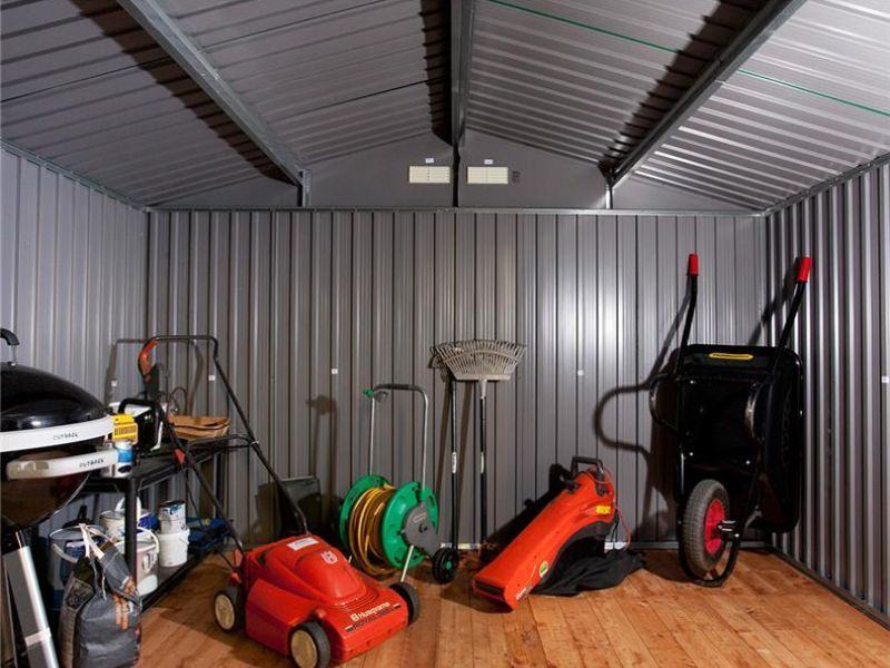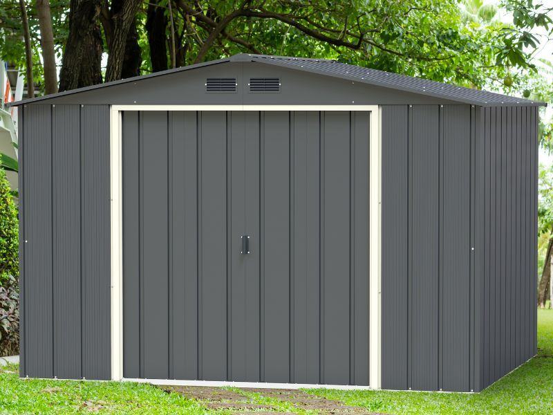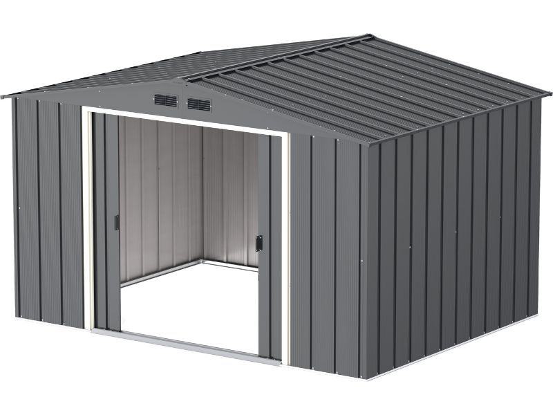 Ta kovinska vrtna uta nudi praktičen in varen prostor za shranjevanje različnega vrtnega orodja, pohištva in dodatkov, ter jih ščiti pred zunanjimi vplivi, kot so prah, umazanija in podobni odpadki. Drsna vrata vam omogočajo enostaven vstop. Prašno lakiran material zagotavlja trdnost in dolgo življenjsko dobo. Potrebna je namestitev.
