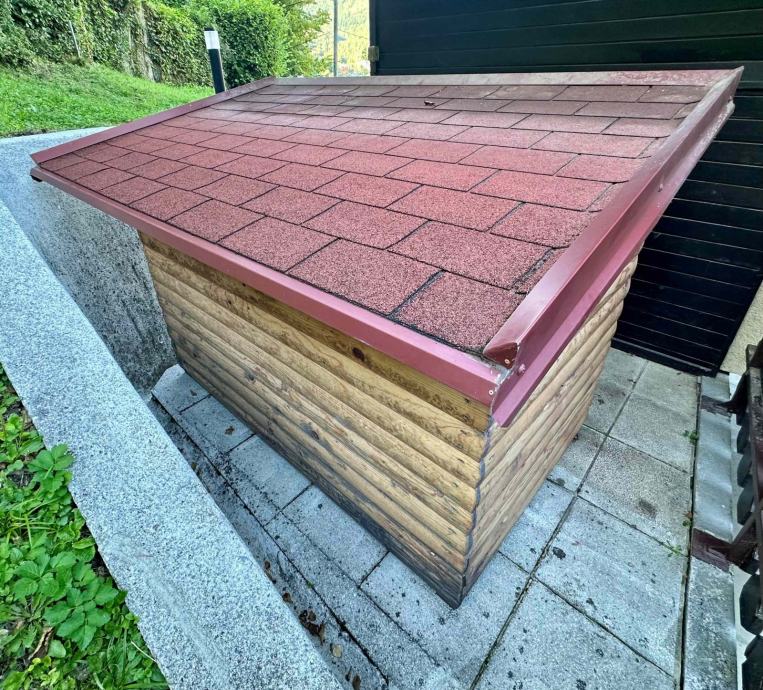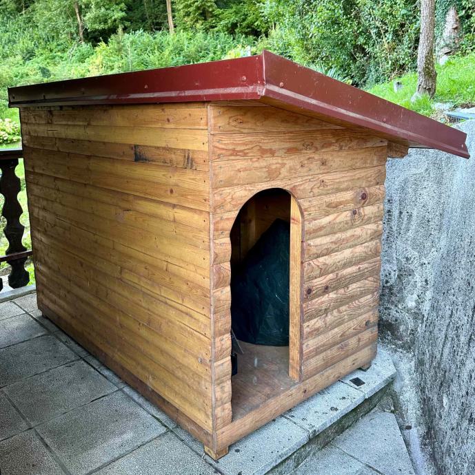 Masivna lesena hiška izdelana po naročilu. Namenjena za večjega psa vendar praktično neuporabljana.