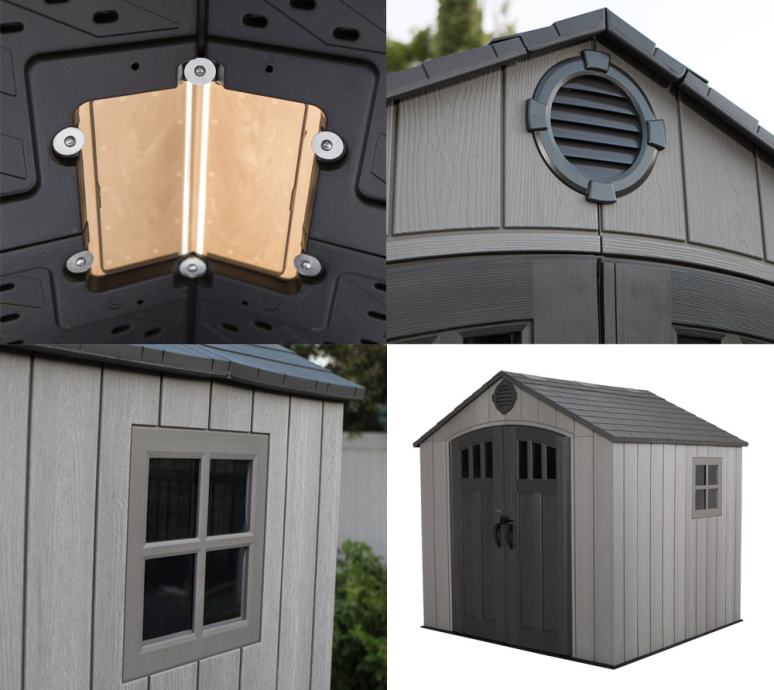 Visokokakovostne lope veljajo za najbolj stabilne in dolgotrajne plastične lope na trgu – in ne brez razloga: ogromna stabilnost lope izhaja iz njene konstrukcije iz plastike HDPE (trdi polietilen) z dvojnimi stenami, ojačane s kovino. Strešna konstrukcija iz visokozmogljivega jekla lahko prenese obremenitev do 115 kg/m², idealen 23-odstotni naklon strehe pa omogoča tudi hitro odvajanje vode in snega.