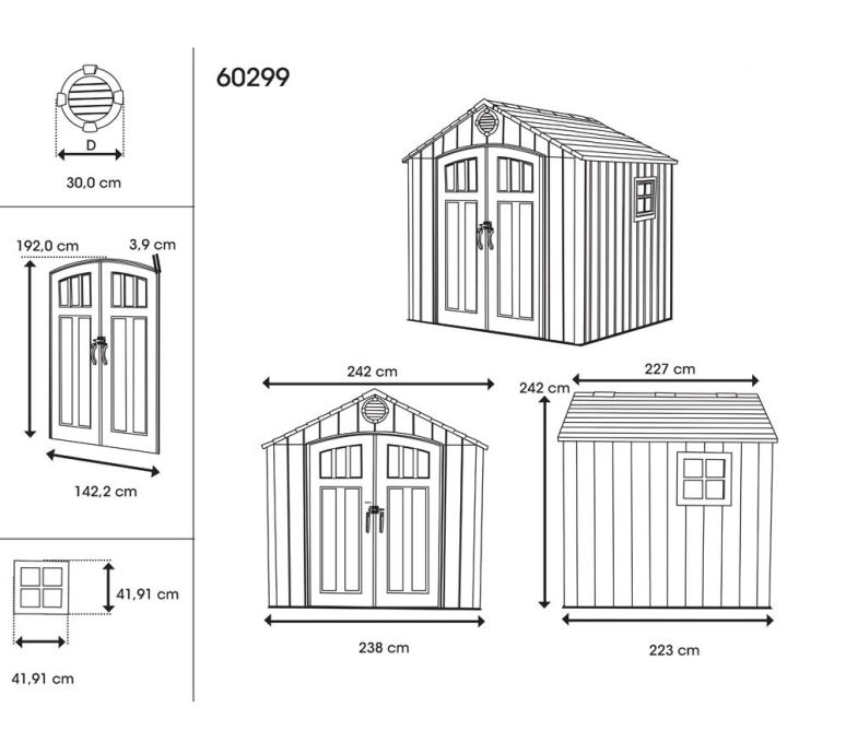 Plastične lope za orodje so zasnovane za celoletno uporabo na prostem in so popolnoma odporne na vremenske vplive in UV žarke. Velika dvojna vrata omogočajo enostaven dostop in shranjevanje vaše opreme. Tudi za vzdrževanje lope vam ni treba skrbeti: visokokakovostna plastika je izjemno enostavna za nego in vzdrževanja.