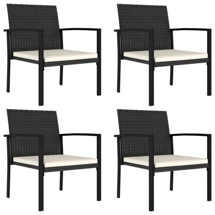 S tem kompletom vrtnih jedilnih stolov boste ustvarili pridih modernega stila. Komplet je izdelan tako, da bo dopolnil zunanjo jedilno garnituro ali služil samostojno. Ta komplet stolov bo privlačen dodatek za vsak prostor. Trden jeklen okvir je ovit v vremensko odporen PE ratan ter zagotavlja, da so jedilni stoli stabilni, trpežni in primerni za uporabo na prostem. Priložene blazine za sedeže prispevajo k udobju med sedenjem. Stoli imajo lahko konstrukcijo, zato jih boste brez težav premikali.