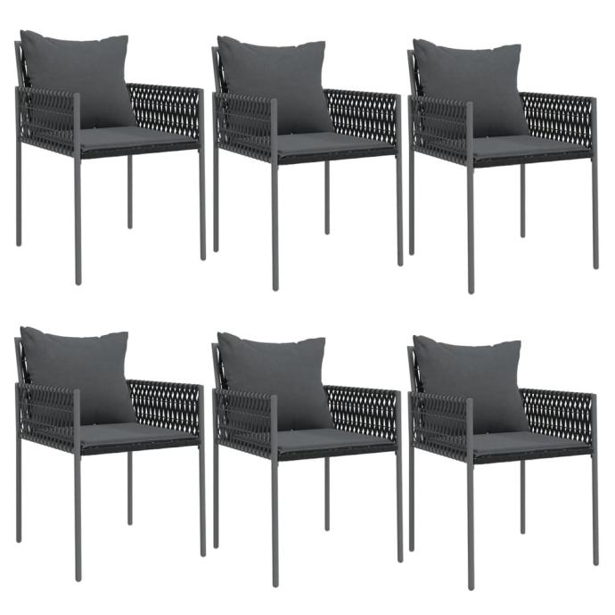 vidaXL Vrtni stoli z blazinami 6 kosov črni 54x61x83 cm poli ratan
