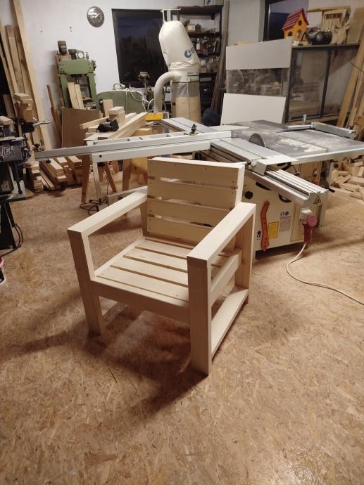 Vrtni stol je modernega videza z enostavnimi ravnimi linijami.