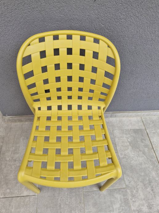 Prodam 10 modernih vrtnih stolov rumene barve.