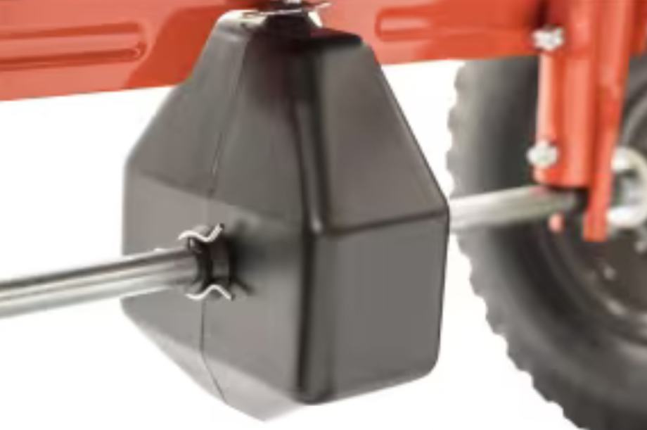 V keson se lahko naloži do 60 kg materiala, ki se posipa do 3,65 m širine. Opremljen z gumami dimenzije 4.00×6 za dober oprijem. Zaprt in zaščiten prenos za daljšo življensko dobo.