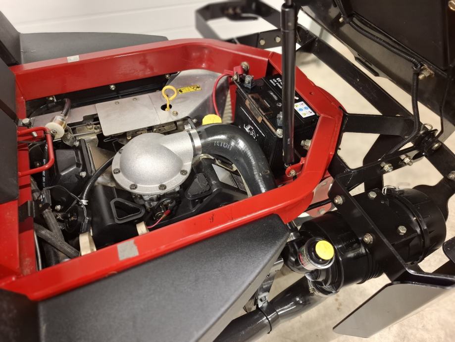 Odlično se odnese na razgibanem terenu in klančinah saj ima 2 hidro pogona katera poganjajo 2 hidro pumpe. Obrne se na mestu tako da je primeren za večje kot tudi manjše površine z drevesi in kotički katere z navadnim vrtnim traktorjem ni mogoče pokositi ali pa vzeme veliko časa.