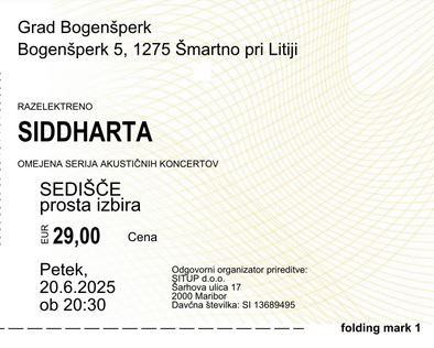 4x vstopnice za koncert SIDDHARTA RAZELEKTRENO 2025 Bogenšperk, Litija
