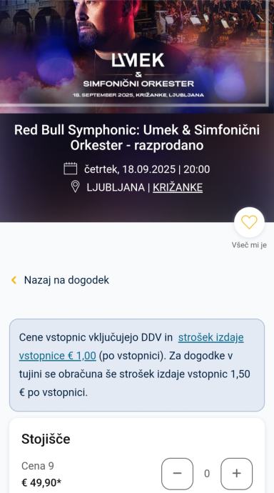 Kupim 2 karti za koncert v Križankah, 18.09.2025 - Umek & Simfoniči orkester.