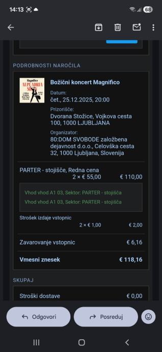 magnifico božični koncert stožice, 2x karta stojišče