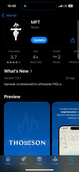 Prodam 4 karte za thompsona (parter). Karte pošljemo preko MPT aplikacije. Cena je po dogovoru