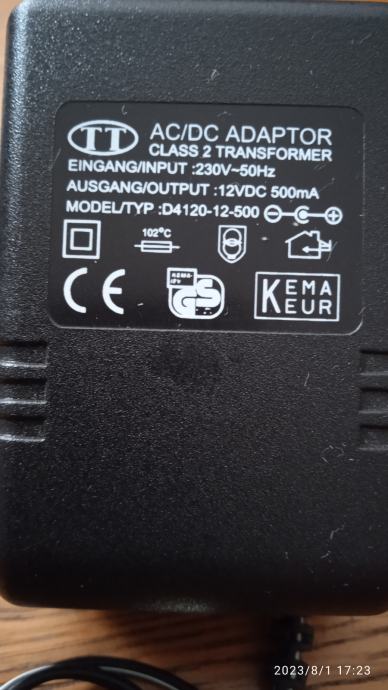 Vhod 220V AC, izhod 12V DC, 500mA, vtič 2.1/5.5 mm,