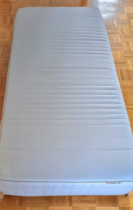 IKEA vzmetnica iz spominske pene, čvrsta/bela, MYRBACKA, 90x200 cm, debelina 24 cm. Enostavena za čiščenje, odstranljiva in pralna prevleka na zadrgo. Smeljiva prevleka je oprana in čista kot nova