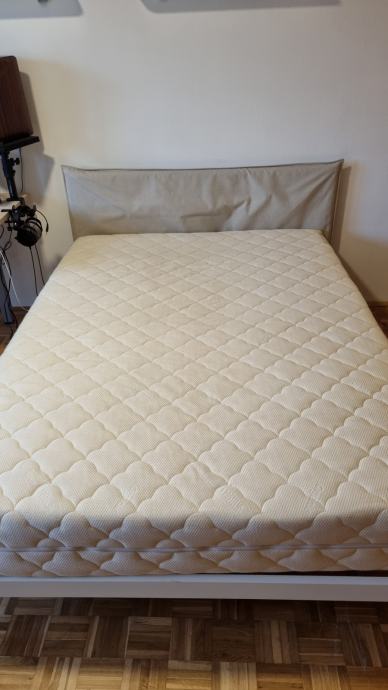 Na fotografijah je mogoče videti tudi posteljni okvir in letvice, ki nista vključena v ceni. To prodajam ločeno ali v kompletu (poglej moje ostale oglase).