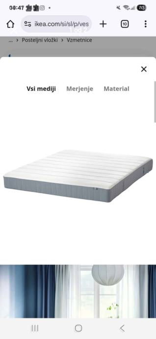 Vzmetnica je malo rabljena, na drugi postelji. Velikost 140x200cm. Oprana, saj ima pralno prevleko. Več o vzmetnici lahko najdete na: https://www.ikea.com/it/it/p/vesteroey-materasso-a-molle-insacchettate-rigido-azzurro-30450609/