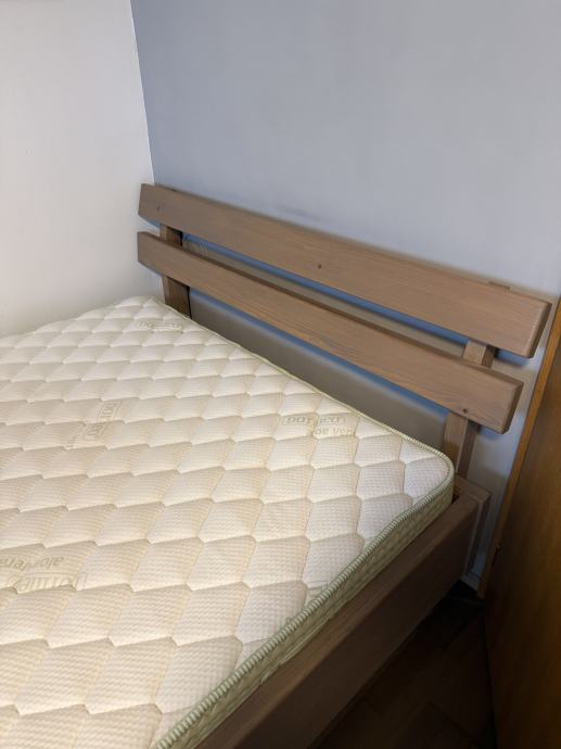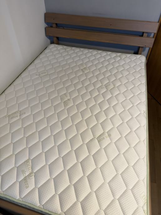 Odlično ohranjena vzmetnica, v uporabi le eno leto. Mere so 140x200 cm, lahko se jo kupi tudi s posteljo katere cena je 150€, je odlično ohranjena, izdelana ročno po naročilu iz lesa.