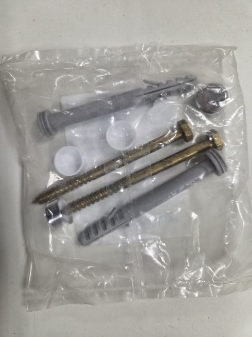 - Vsebuje dübel, vijake, podložke in zaščitne kape