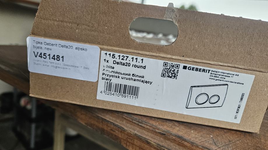 Prodaja se nova, nerabljena tipka Geberit Delta20, alpsko bela, saj ne paše na naš podometni splakovalnik. Kupljena v fero term za 44 eur