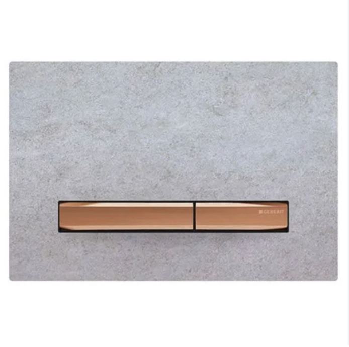 Geberit dvo količinska wc tipka, sigma 50 , kovinska barva-rdeče zlato, okoli videz betona.
