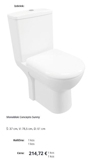 *WC deska ni del dobave in jo je treba kupiti posebej