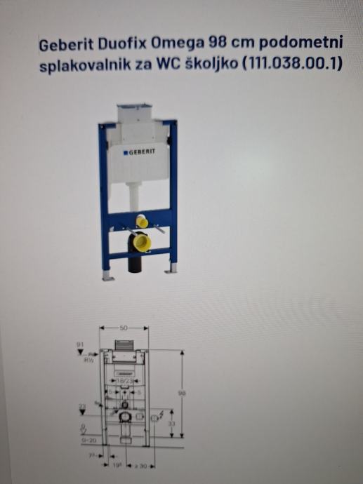 Prodam nov podometni splakovalnik Geberit, Duofix Omega 98 cm.