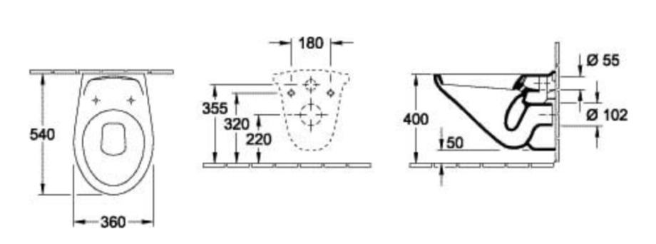 - wc školjka viseča, Villeroy Boch, OMNIA CLASSIC, 360x540 mm, ceramicplus