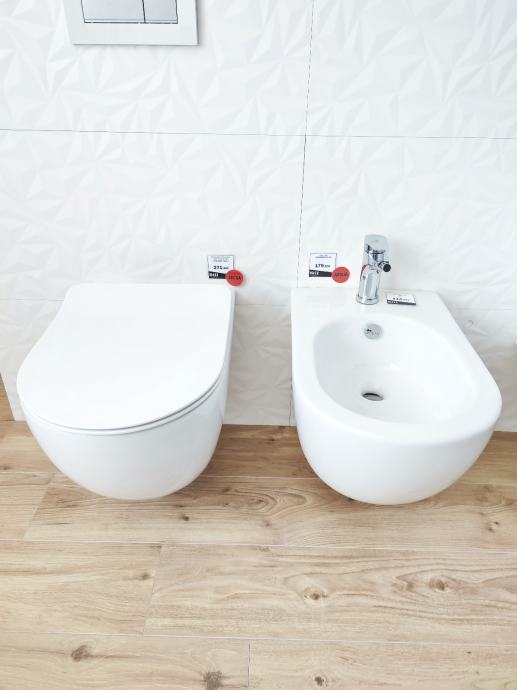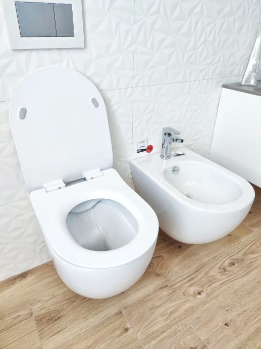 WC školjka, viseča, rimless + tanek pokrov na mehko zapiranje+bide