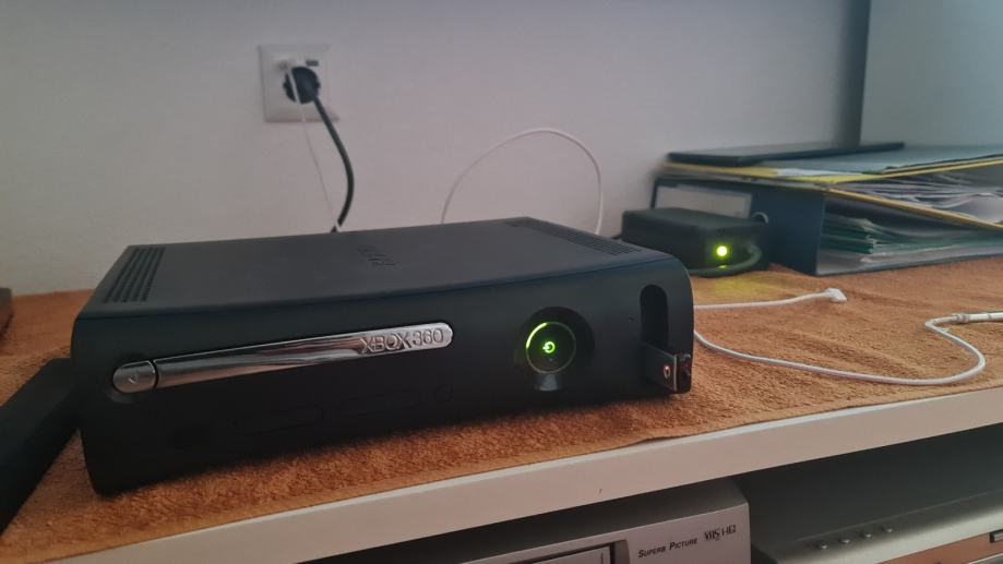 Konzola xbox 360 +napajalnik s kabli +brezžični kontroler kot novi ter dve original igri pure ,, štiri kolesniki,, fifa 2015.. ter +8 iger na usb ključu forza 4, minecraft..... deluje vse! lahko se sproba