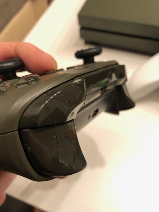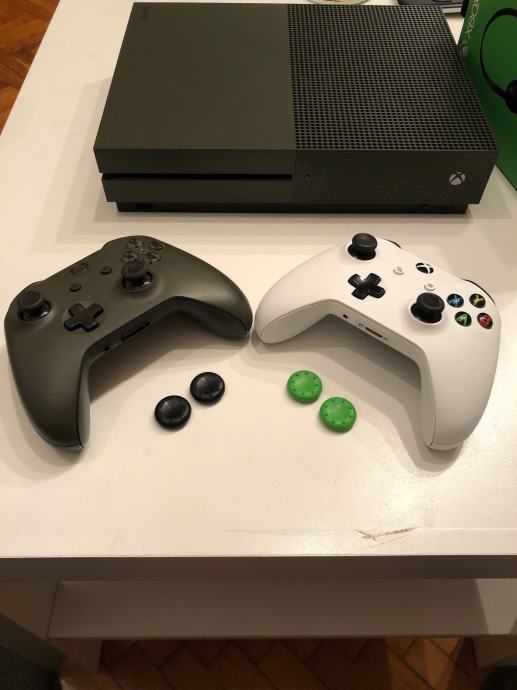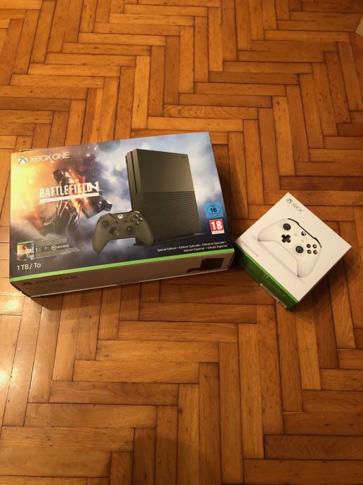 Prodajam Xbox One Battlefield edition z dvema kontrolerjema. Oba kontrolerja imata gumice na joystikih za boljši oprijem, pravtako imata baterijo, ki se polni preko kabla na USB. Battlefield kontroler ima poškodovan desni trigger (razvidno iz slik), vendar ni moteče pri igranju.