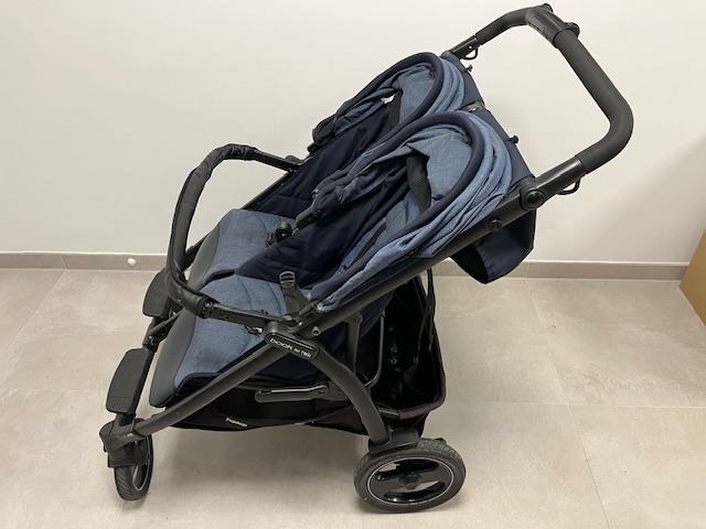 Prodam praktično nov, nepoškodovan in zelo dobro ohranjen voziček Peg Perego Book For Two v Indigo, modro-jeans barvi. Iz izkušenj je voziček najožji in najvodljivejši voziček na trgu.