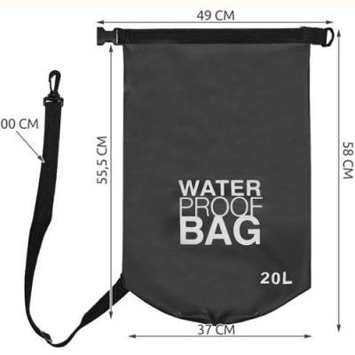 Torba je izdelana iz trpežnega materiala, ki ni le vodoodporen, ampak tudi učinkovito ščiti predmete v notranjosti pred praskami in umazanijo. zaradi umazanije, peska ali soli . Črna barva in gladka, spolzka površina ne vpijata vlage ali umazanije, zato je popolna tudi pri ekstremni, intenzivni uporabi, zagotavlja pa tudi enostavno čiščenje. Izdelek je trden in uporaben večkrat v daljšem časovnem obdobju . 10-litrska torba vam omogoča, da vanjo shranite številne uporabne in dragocene predmete, kot so telefon, denarnica, oblačila, čevlji, knjige, zemljevidi, fotoaparat, elektronska oprema ali druge stvari, odvisno od potreb posameznika.