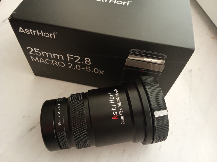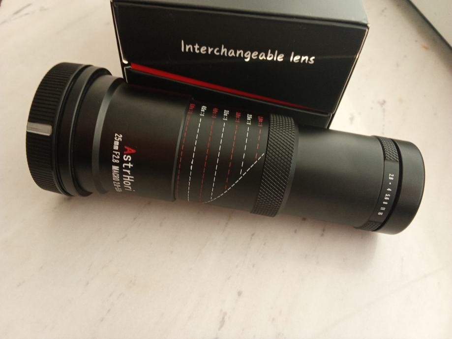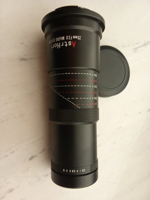 Objektiv je praktično nov,deluje brezhibno in se ponaša z 2-5x povečavo,