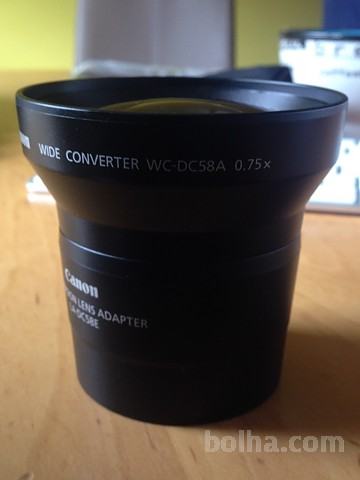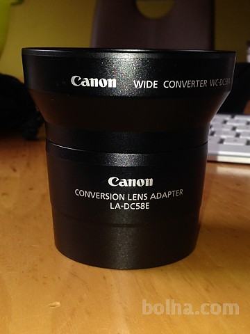 Prodam komplet CANON CONVERTER WC.DC58A 0,75x -sirokokotni, dodatni COVERSION lens adapter LA-DC58E. Converter in lens conversion adapter sta namenjena za digitalne kamere CANON: S5 IS, S3 IS in S2 IS.