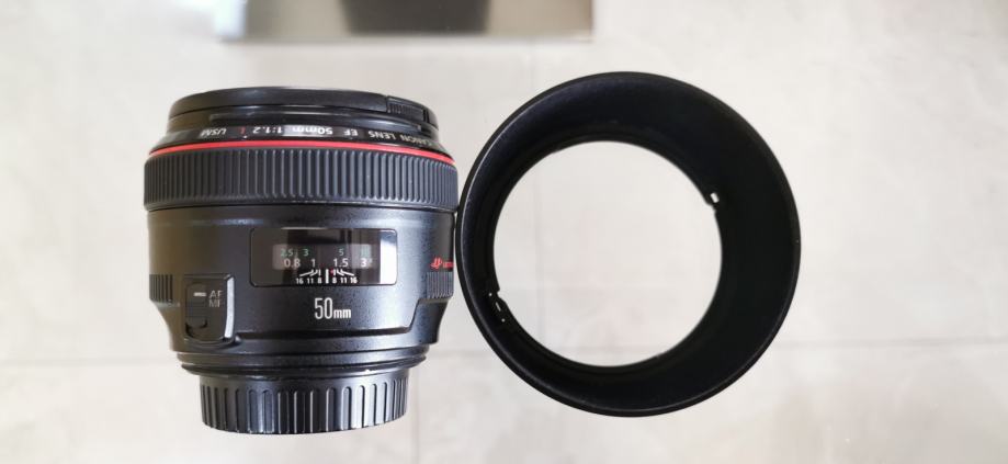Prodam Canon EF 50mm f/1.2L USM, vrhunski standardni objektiv iz Canonove "L" serije. Ponuja izjemno svetlo zaslonko f/1.2, kar omogoča čudovit bokeh in odlične rezultate pri šibki svetlobi. Idealno za portrete, poroke, umetniško fotografijo in vsakodnevno rabo.